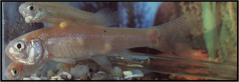 - يسبب انزفة نمطية على هيئة خطوط نزفية على الصدر و البطن وعلى الزعانف